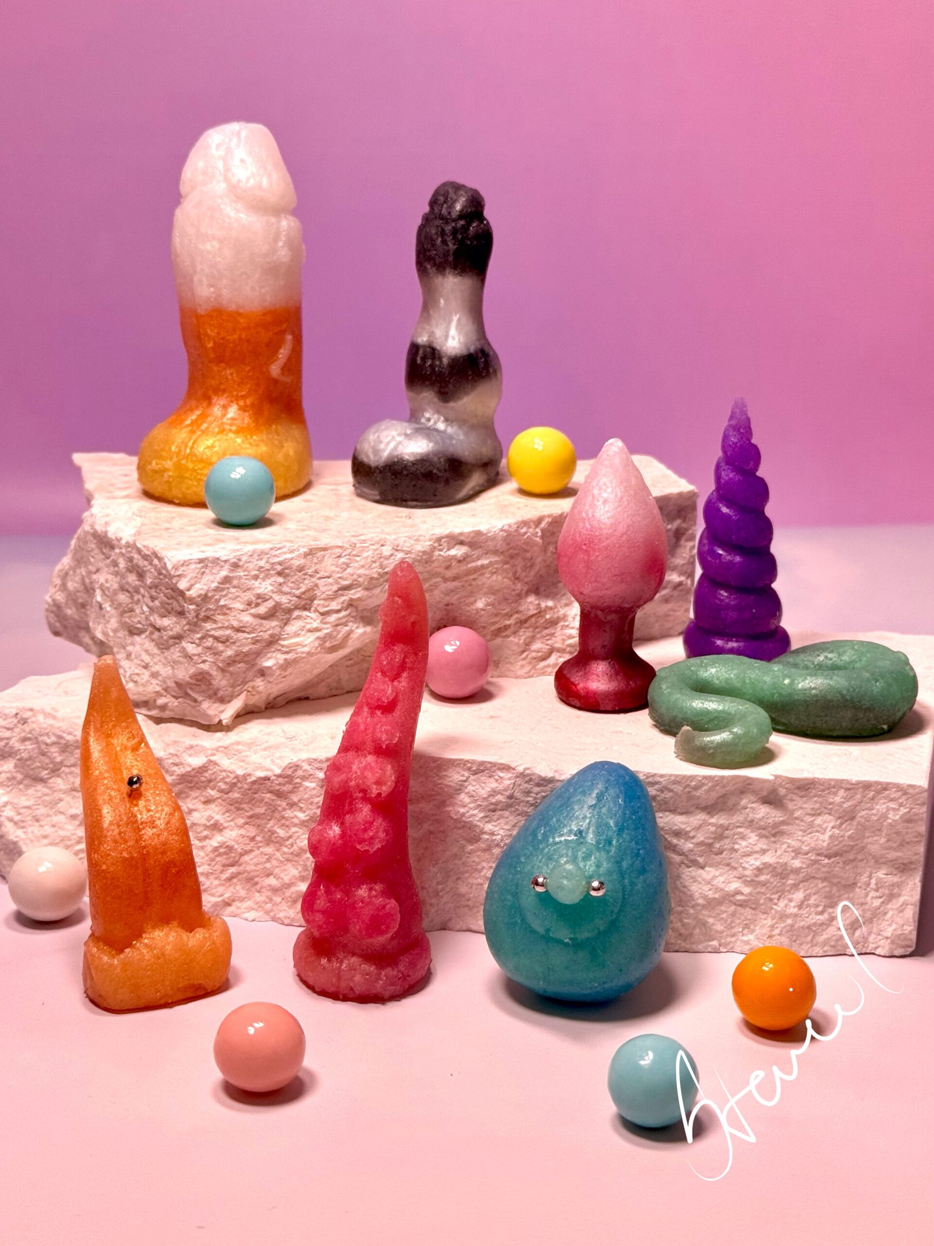 Each Monster Mini is made from platinum core silicone—the same stuff big “toys” are made of. They all mixed and poured by hand by me.